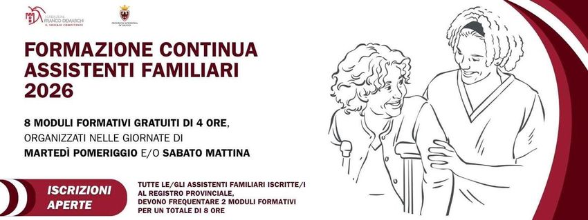 Ad aprile 2026 partiranno i nuovi moduli della formazione continua e gratuita rivolta ad assistenti familiari (badanti) iscritte/i al Registro provinciale organizzata da Fondazione Franco Demarchi in accordo con la Provincia autonoma di Trento - Servizio politiche sociali.